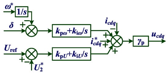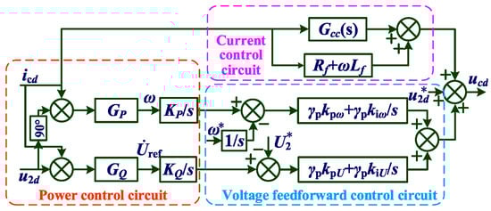 The voltage feedforward control diagram is depicted in Figure 4. Applying voltage amplitude control instead of voltage vector control facilitates reducing the complexity of input reference deviation control. The voltage control input follows its reference via a PI controller to ensure static error-free tracking. It follows from Figure 4 that the synchronous frequency deviation and the system output voltage deviation are fed to the compensation current reference .