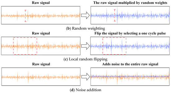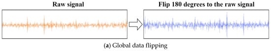 A component is randomly selected from which a local data segment of length one cycle pulse signal is randomly selected, and the segment is flipped along the time dimension. The result of this strategy is shown in Figure 4c, as shown in the following Equation (17).