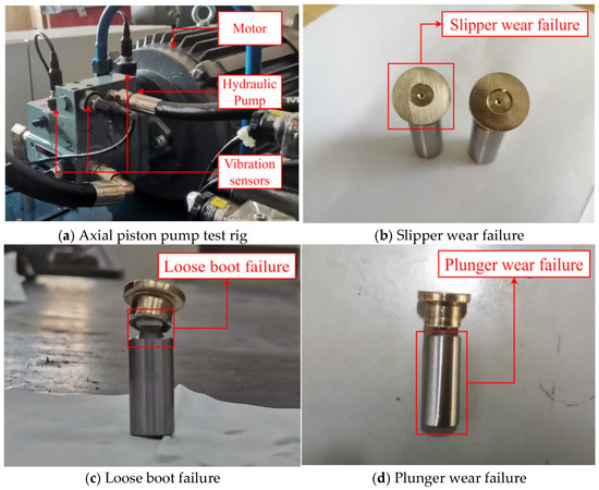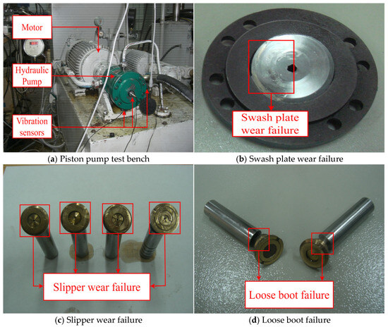 - Xu, X.; Zhang, J.; Huang, W.; Yu, B.; Lyu, F.; Zhang, X.; Xu, B. The loose slipper fault diagnosis of variable-displacement pumps under time-varying operating conditions. Reliab. Eng. Syst. Saf. 2024, 252, 110448. [Google Scholar] [CrossRef]