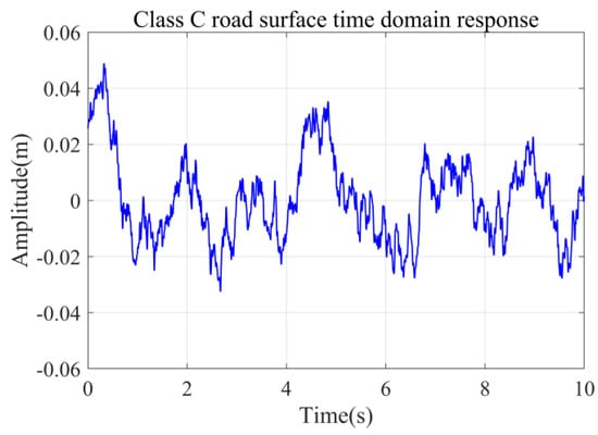 where Zq represents the amplitude of stochastic road excitation; Gq(n0) denotes the road unevenness coefficient; u indicates the vehicle’s longitudinal velocity, set to 20 m/s; ω(t) corresponds to uniformly distributed Gaussian white noise with zero mean and unit intensity; and f0 refers to the filter’s lower cutoff frequency, assigned as 0.01 Hz.