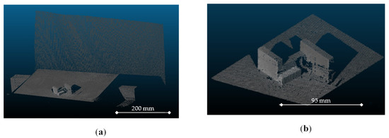 A 3D reconstruction of the gauge blocks. (a) Point cloud before cleaning. (b) Point cloud after applying the cleaning process.