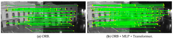 • Feature key point extraction and matching are enhanced using MLP and Transformer architectures, which have demonstrated superior performance in capturing long-range spatial dependencies and robust feature representations in visual tasks [25,26];