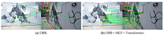 • The development of a visual–inertial odometry system with feature enhancement based on MLP and Transformer architectures. An MLP is incorporated into the traditional VIO framework to perform self-enhancement of feature descriptors, improving the matching robustness of individual keypoints under viewpoint and illumination changes;