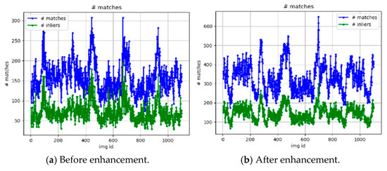 Figure 6. Comparison of raw matches and inlier matches before and after enhancement.