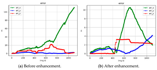 Figure 7. Comparison of trajectory errors before and after enhancement (XYZ axes).