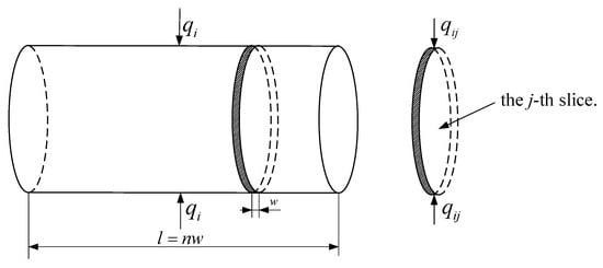 To enhance the accuracy of contact load calculations, particularly in analyzing the contact behavior of line-contact elements such as cylindrical rollers, this study employs the slice method for modeling and analysis. The slice method is an analytical approach that utilizes numerical integration and segmented computation, and it is widely applied in the mechanical analysis of rolling bearings. This method entails dividing the raceway contact surface of the bearing into several thin slices along either the axial or radial direction. The local contact load and deformation of each slice are calculated individually, and the overall load response of the rolling element is subsequently obtained by summing the results of all slices. The fundamental concept of the slice method is to transform a complex three-dimensional contact problem into multiple two-dimensional approximate problems, thereby significantly reducing the complexity of mathematical modeling and computation.