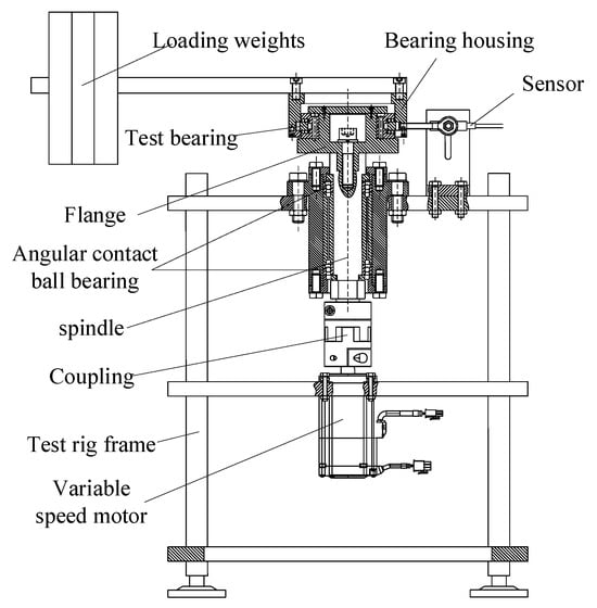 Finally, it is assumed that the outer ring is fixed while the inner ring rotates. This assumption is based on the structural characteristics of the experimental setup: during testing, the inner ring is connected to the motorized spindle via a coupling flange, while the outer ring is attached to a stationary force sensor through a mounting base. Therefore, under the test conditions, the bearing operates with a rotating inner ring and a stationary outer ring.