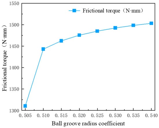 Influence of steel ball groove curvature radius coefficient on friction torque.