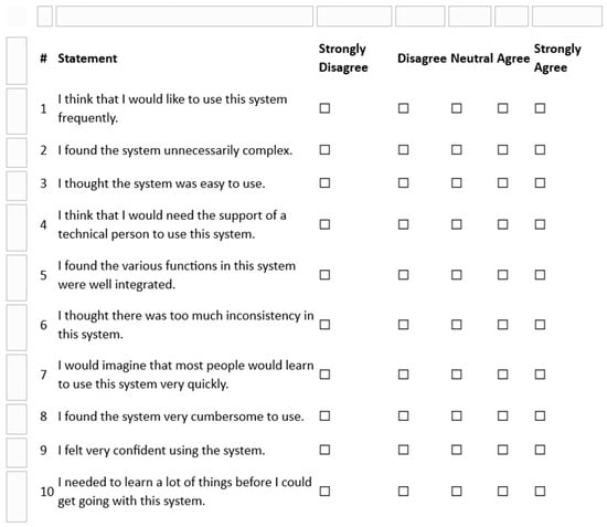 Expanding the modalities and scope of the collected data would allow for an update to the data analysis window size, which is an interesting avenue for identifying the optimal setting. Furthermore, exploring different motion parameter configurations could offer new perspectives on navigational capabilities and stability. A comprehensive revision aimed at scalability and future integration into educational systems is also essential. In the proposed future assessment session, students shall indicate how much they agree with the above statements about their experience using the PlatypOUs robot and data analysis platform (including data processing and visualization tools) for analyzing their own robot-collected data (Figure 9). Certain modern robot system development frameworks, such as the IEEE’s Ethically Aligned Design principle (published as standard: IEEE 7007-2022) [37,38], could be applied to ensure ethical development and alignment with industry best practices. Overall, these innovative approaches could enable robots to operate more efficiently and accurately, offering new opportunities and advancements in the field of robotics.