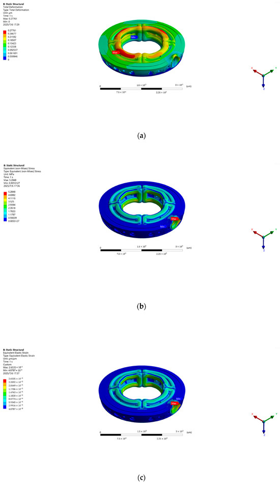 - As the temperature increases, the deformation and strain of the hydrostatic turntable system increase monotonically. For every 1 °C increase, the total deformation of the bearing increases by about 0.285 . This conclusion provides inspiration for the optimal design of the cooling system of the hydrostatic rotary table. For example, the thermal safety limit of the turntable operation can be established according to the quantitative relationship between the temperature and deformation to improve the heat dissipation accuracy of the cooling system.