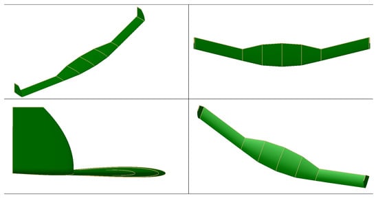 - Kim, K.-J.; Ahn, J.; Kim, S.; Choi, J.-S.; Suk, J.; Lim, H.; Hur, G.-B. Analysis of partial wing damage on flying-wing unmanned air vehicle. Proc. Inst. Mech. Eng. Part G J. Aerosp. Eng. 2014, 228, 355–374. [Google Scholar] [CrossRef]