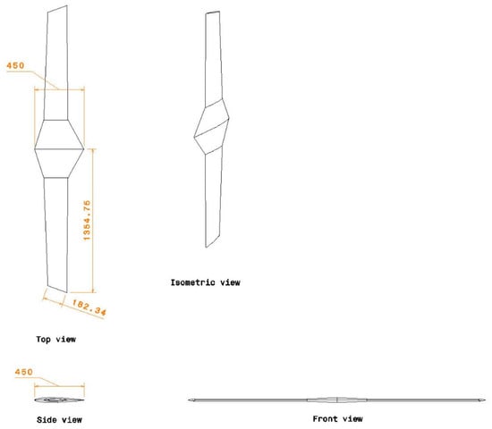 The advanced Quadcopter’s forward maximum velocity is picked as 55 m/s based on the mission requirement. The average velocity of the working fluid at the ocean-based environment is found to be 6 m/s. After substituting the determined data in Equation (9), the diameter of the propeller is calculated as