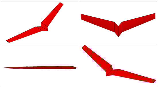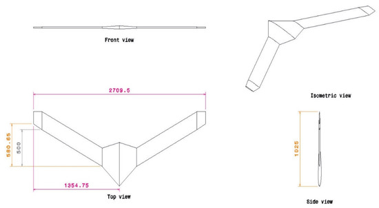 - Dagur, R.; Singh, V.; Grover, S.; Sethi, N.; Arora, B.B. Design of flying wing UAV and effect of winglets on its performance. Int. J. Emerg. Technol. Adv. Eng. 2018, 8, 414–428. [Google Scholar]