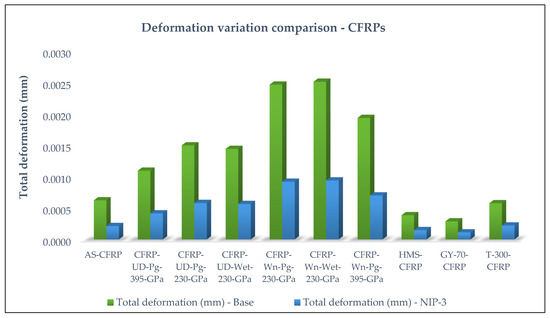 The material performances are revealed in Table 9, giving the best and worst performing materials when taking into account the deformation and stress parameters. As seen above, GY-70-CFRP and HMS-CFRP perform best, while GFRP-FR-4-FABRIC and CFRP-UD-Pg-395-GPa perform slightly less well in comparison. This could be utilized in further material design processes, for the betterment of its operation.