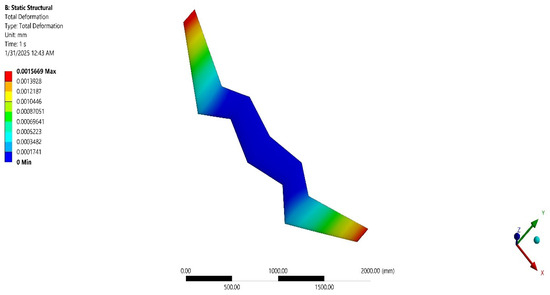 After the material design process, the final hybrid material is studied for any kind of improvement in its structural parameters. The material data are imported as a new structure in the Static structural solver and analyzed. The results of the deformation and stress variation contours are shown in Figure 78, Figure 79, Figure 80 and Figure 81. The comparison of individual conventional composite materials and the hybrid material results are shown in Table 10.