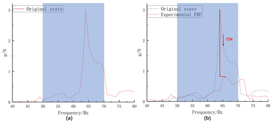 (a) The FRF of the door is measured experimentally before arranging the LRAM; (b) the FRF of the door after arranging the LRAM is compared with the FRF in the original state.