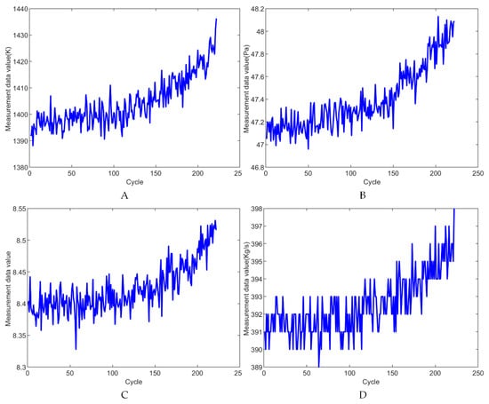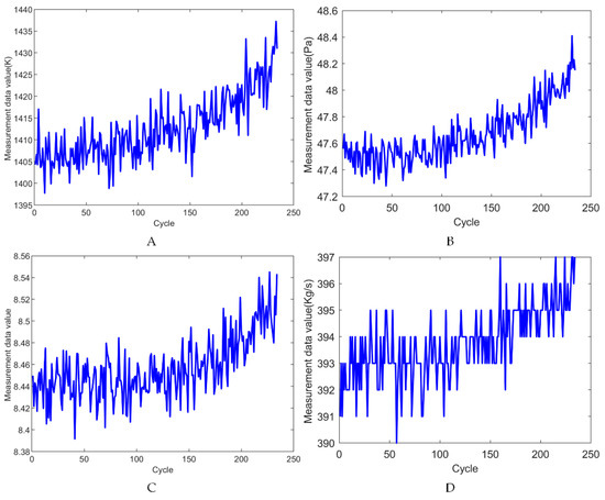 The measurement data of Engine 10: (A) is T50; (B) is PS30; (C) is BPR; (D) is HT_BLEED.