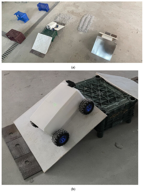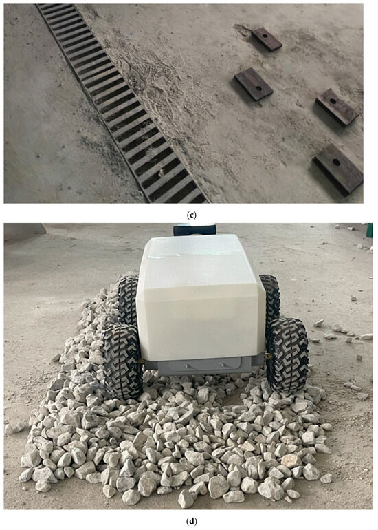 Obstacles designed to induce vibration without requiring directional changes were placed along both sides of the robot’s path. Each obstacle measured 30 mm in height and 100 mm in length. A total of four obstacles were positioned with 200 mm gaps between them. These features were intended to disrupt the robot’s linear motion and introduce vibrational effects.