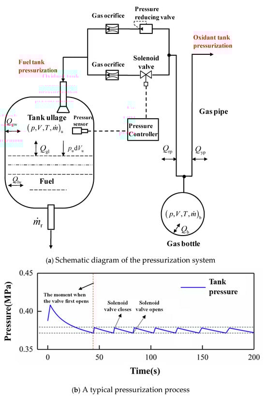 The high-fidelity mathematical model for the pressurization system is shown in Equations (27)–(30):