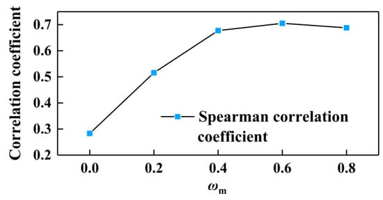 where ωm represents the weighting coefficient of model and knowledge-based correlation in the fusion evaluation metric. The feature subset SC (K, ω) is the set of the first K features in the subset S|f| when the weighting coefficient ωm = ω. The subscripts f and c represent features and target variables; Rthres is the threshold value for discarding knowledge and model-based correlations. The values of ωm and K are important hyperparameters of the algorithm, and, in actual engineering problems, the reliability of domain knowledge and test data is hard to evaluate and lacks prior knowledge, so ωm and K are optimized using the wrapper method, which is determined by the root mean square error of the prediction.