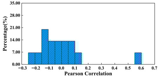 where Cov(*, *) represents covariance, and X, and Y are random variables. Meanwhile, mutual information is introduced as a measure of nonlinear correlation. Mutual information is an important indicator that quantifies the degree of interdependence between two variables [] and can reveal complex, nonlinear relationships between variables. Its definition is given in the following equation: