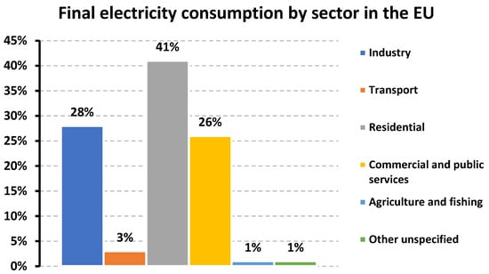 In the context of the residential sector, Figure 2 shows the distribution of energy consumption by different applications according to 2019 data [].
