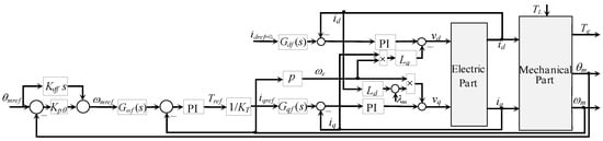 The control of an actuator based on PMSG is described in detail in [22]. The complete control system, which includes two PI current controllers with nonlinear feedforward terms, one PI speed controller with zero compensation, and a derivative feedforward-feedback controller, is shown in Figure 5.