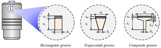 - Ye, Y.; Yin, C.; Li, X.; Zhou, W.; Yuan, F. Effects of groove shape of notch on the flow characteristics of spool valve. Energy Convers. Manag. 2014, 86, 1091–1101. [Google Scholar] [CrossRef]