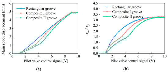 5.4. Experimental Study on Main Spool Displacement Characteristics
