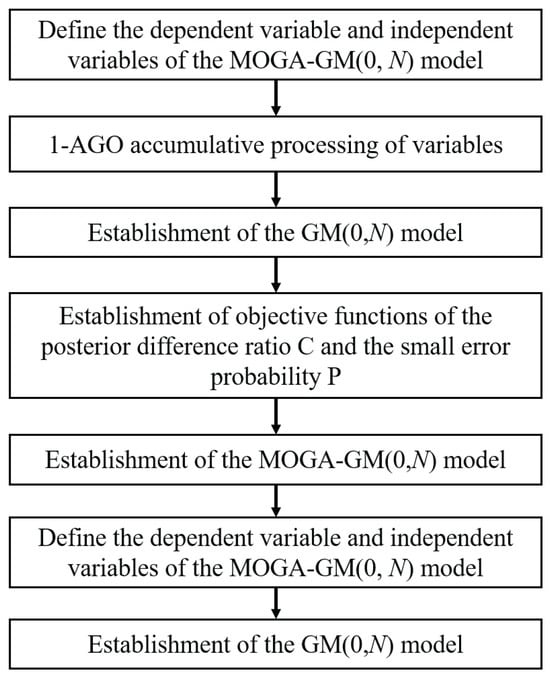 Multi-variable gray prediction models can identify correlations among N variables []. The GM(0, N) and GM(1, N) models are multi-variable gray prediction models for the zero- and first-order equations, respectively. The GM(1, N) model can identify correlations between independent variables and a dependent variable by using the first-order non-derivative series []. The principle of the GM(1, N) model is to accumulate and generate the first-order accumulated generating operation (1-AGO) sequence with increasing regularity based on the original sequence with unstable and irregular original sequence data []. Consequently, the GM(1, N) model can effectively describe regular changes in correlations among multiple variables. To improve the prediction accuracy of the GM(1, N) model, Tien [] proposed an optimized GM(1, N) model with an improved analysis structure. A multi-variable GM(1, N) model was proposed in [], incorporating additional terms, e.g., dependent variable lag term and linear correction term. Li et al. [] developed a time-lagged logistic grey prediction model with harvesting terms.