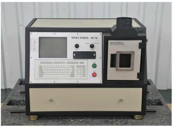 Oil-related condition monitoring technologies are common solutions to identify gearbox faults, evaluate operation conditions, and define oil maintenance intervals, including oil debris analysis and oil condition monitoring (OCM) []. Oil debris analysis is mainly performed by using oil sampling or sensors that measure some parameters, e.g., wear particle counting and oil contaminant elements []. Other studies of OCM focused on sensor validation of oil analysis methods to identify gearbox faults based on valid data on additive depletion and oil degradation due to oxidation, oil contamination, temperature, and viscosity changes []. In addition, several OCM methods of gearboxes based on multi-variable oil analysis methods, e.g., fluorescence spectroscopy, and oil viscosity measurements, were developed to improve analysis accuracy and measurement sensitivity of oil-based condition monitoring systems of gearboxes [,].