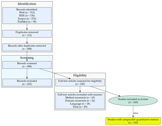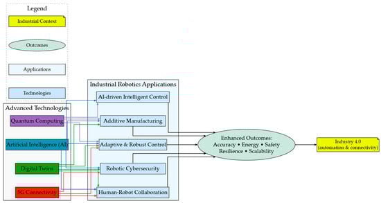 | IEEE Xplore | (“industrial robot” OR “robotic cell” OR “factory robot”) AND (“control” OR “adaptive” OR “AI” OR “digital twin” OR “5G” OR “cybersecurity” OR “human-centric” OR “bio-inspired” OR “additive manufacturing” OR “multi-robot” OR “quantum control” OR “real-time optimization”) | Metadata (Document Title, Abstract, Index Terms) |
