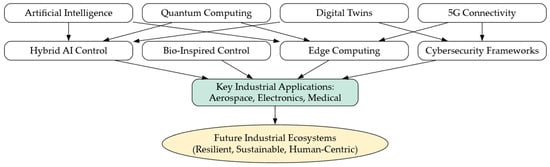 - Scalability: The high computational demands of AI-based controllers limit deployment in small-scale industries. Mishra et al. [45] reported a ~40% higher processing load for multi-agent DRL versus centralized heuristics. Nievas et al. [72] highlighted a ~30% scalability gap in autonomous process control (see also Aljamal et al. [40] for ROS/DRL deployment constraints). Chew et al. [30] and Li et al. [31] found 15–20% additional compute overheads in additive manufacturing (AM) control workflows. Quantum-inspired acceleration could mitigate compute by up to ~25% in simulation studies [20], but practical deployment remains constrained by specialized hardware (cryogenic/photonic) and advanced network protocols that are rarely available in conventional industrial environments.