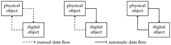 - Digital Model (DM): Data exchange between the physical and virtual worlds occurs manually.
