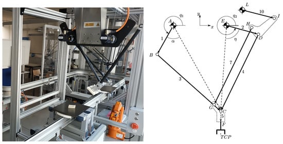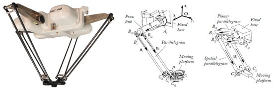 - Rosenzveig, V.; Briot, S.; Martinet, P. Minimal representation for the control of the Adept Quattro with rigid platform via leg observation considering a hidden robot model. In Proceedings of the 2013 IEEE/RSJ International Conference on Intelligent Robots and Systems, Tokyo, Japan, 3–7 November 2013; pp. 430–435. [Google Scholar]