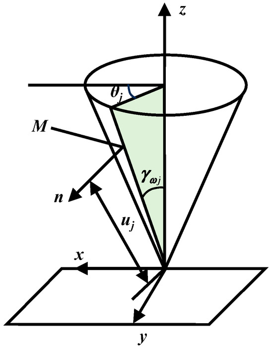 where point M has coordinates ; denotes the distance from point M along the pitch cone generatrix to the cone apex; and represents the developed angle of point M in the plane. Then, the unit normal vector on the pitch cone generatrix can be expressed as: