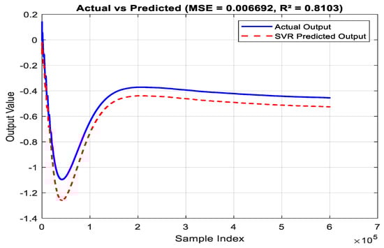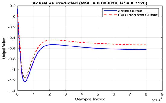 - Training Set (65%)—Used to train the SVR model by optimizing support vectors, kernel function parameters (e.g., RBF kernel width), and penalty coefficients. This phase ensures the model captures the underlying dynamics of the system based on simulation data.