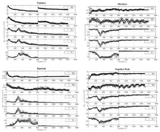 In the present work, the most used features were extracted from the signals. Most of them were statistical moments, and they are reported in the following list for the sake of completeness: