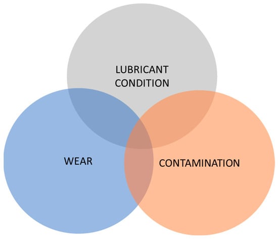 The analysis of a lubricating oil is structured around three main categories (Figure 2) []: fluid properties analysis, contamination analysis, and wear analysis.