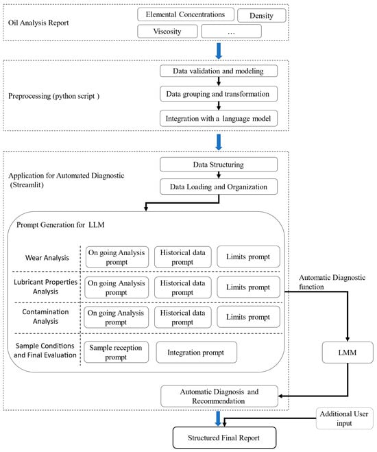 The application developed using the Streamlit framework enables interactive analysis of data related to wear, lubrication, and contamination of mechanical components. The system integrates several key functionalities, from managing and filtering complex datasets to automatically generating diagnostics through an LLM. The functions developed are data structuring, data loading and organization, prompt generation for the LLM, and automatic diagnostics and final output. In addition to this, an appropriate user interface was also developed.