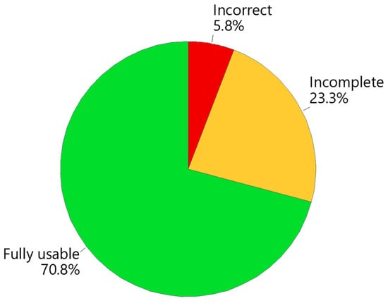 Table 1 provides a summary table of the subdivisions, grades, and meanings of the classes. The scoring system’s classification is based on identifying elements that are considered discriminating for evaluating the diagnosis’s goodness. First of all, we considered the plausibility of the diagnosis in relation to the physical scenario of the system, meaning its consistency with reality. If this feature is not present in the diagnosis, it is rated inadequate with a score value of zero. The partial consistency leads to the second class; full consistency but a partially exhaustive analysis and the necessity of some clarification belong to the third class; and finally, ready-to-use diagnoses are collected in the fourth class. Within the three main classes of goodness-of-diagnosis assessment, three internal levels were identified to provide within-class granularity in the assessment of the individual diagnosis while still within the key characteristics of the class.