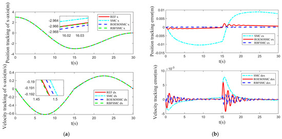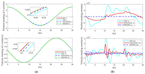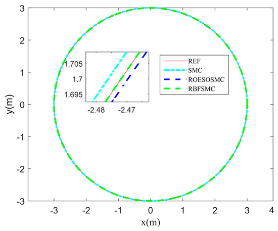 The radial basis function neural network-based sliding mode control (RBFNNSMC) method demonstrated superior tracking accuracy and smoother performance across all directions. Furthermore, during the trajectory transition, the system state underwent more natural transitions without exhibiting violent oscillations.