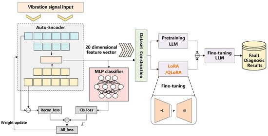 To address these gaps, this paper proposes using a supervised autoencoder (SAE) to automatically learn high-quality, low-dimensional feature representations from vibration signals that are task-oriented. These “learned” features are then fed into an LLM for fine-tuning. This approach combines the LLM’s strong generalization capability with highly refined, customized feature representations, aiming to construct a more efficient, accurate, and automated intelligent fault diagnosis framework.