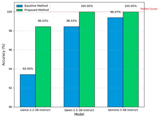 The baseline method’s direct diagnosis accuracy on each LLM is shown in Table 4 and Figure 7, with the confusion matrices at epoch 10 shown in Figure 8. The baseline method achieves reasonable accuracy on all tested LLMs, with the highest accuracy on Gemma-3-4B-Instruct and the lowest on Llama-3.2-3B-Instruct.
