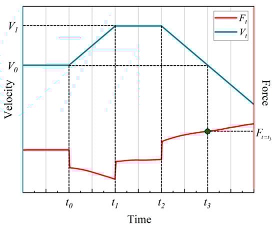 The drag coefficient of the vehicle can be determined by simulating uniform motion in the fluid, while the evaluation of the added mass coefficient requires the vehicle to undergo accelerated motion. As illustrated in Figure 2, this study simulates non-uniform motion by varying the inlet flow velocity, thereby inducing an accelerating motion of the vehicle within the fluid to extract the added mass. When , the vehicle moves at a constant velocity, the hydrodynamic force acting on it is the drag force . During the interval , the vehicle accelerates, and the total hydrodynamic force comprises both the viscous drag and inertial force, which is proportional to the vehicle’s acceleration. The inertial force expression is given in Equation (7):