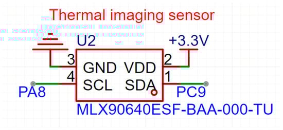 The operational principle of the MLX90640 is grounded in the theory of blackbody radiation, which posits that the intensity of infrared radiation emitted by an object increases with its temperature. This sensor employs a 24 × 32 pixel array detector to capture the infrared radiation emitted by objects, subsequently converting this radiation into digital signals. These digital signals are then read and processed to derive temperature information from the objects. The array comprises numerous minute infrared detection units, each capable of measuring the infrared radiation intensity of a specific area. By assessing the infrared radiation across different regions, the sensor constructs a thermal imaging representation of the entire scene [].