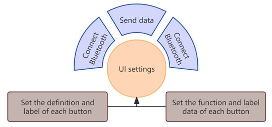 In Figure 14, the flowchart for designing the Android application is presented. The process initiates with the design of the software interface, followed by the configuration of button functionalities. These functionalities encompass connecting to Bluetooth, disconnecting from Bluetooth, displaying Bluetooth information, transmitting data, and setting up label displays, primarily to indicate the Bluetooth connection status and related information.