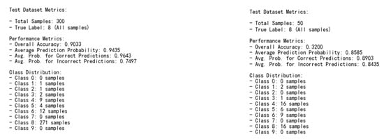 Finally, the dataset for gesture “8” was replaced with 51 images acquired in complete darkness, with the training sets for gestures “5” and “C” retained under normal lighting conditions. The test results demonstrated a further decline in the recognition accuracy for gesture “8”, dropping to 33.3%.