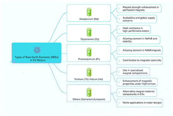 Types of rare-earth elements (REEs) in electric vehicle motors.