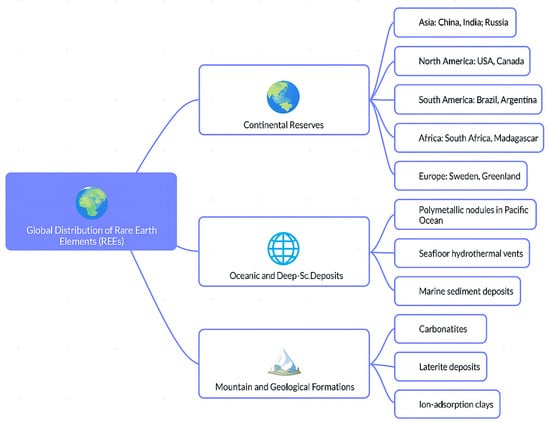 Nickel metal-hydroxide batteries (NiMHs) are used in hybrid electric vehicles that require rare-earth elements (REEs) to store energy. Lanthane is used as an anode of nickel metal-hydroxide batteries (NMHs). A typical hybrid EV needs about 10 to 15 kg of lanthane per unit. Redox flow batteries are another important use of rare-earth elements. For example, zinc cement redox flow batteries use cerium as part of a high-voltage energy storage grid-sized battery, and electric vehicle engines work better when they use neodymium magnets and produce more torque. Many electric vehicle motors use neodymium–iron–boron magnets (NdFeBs). These magnets are better because they contain small amounts of neodymium, Dy, terbium (Tb), and Samarium (Sm). Scientists and engineers from universities and companies are working hard to develop new magnets and other technologies that do not use rare-earth elements (REEs). Tetrataenite and manganese bismuth (MnBi) magnets are new types of magnets that aim to reduce or eliminate the need for rare-earth elements in electric vehicles. An example is Toyota’s fourth-generation Prius engine. The global distribution of rare-earth elements are shown in Figure 4.